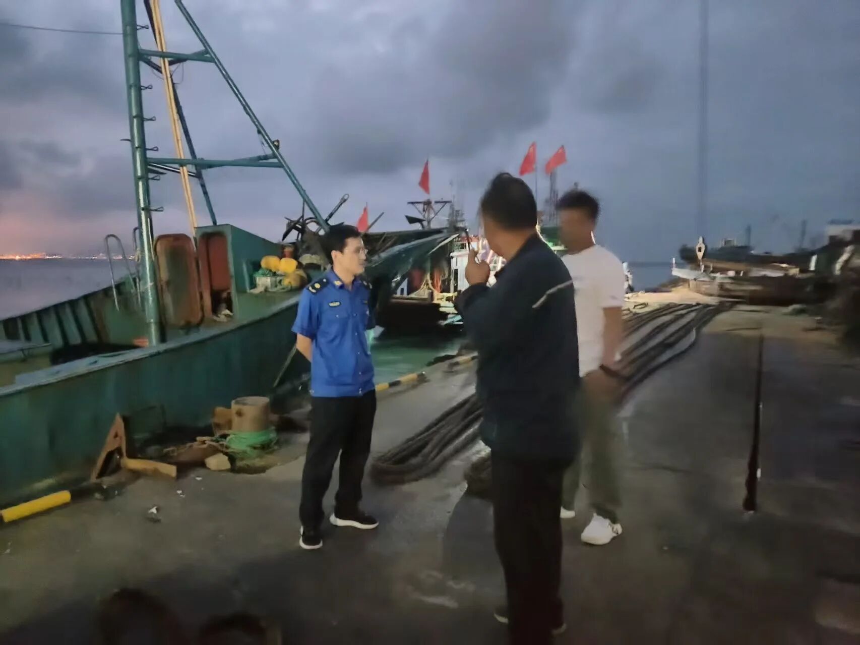 同样的月光,洒向团圆的家宴,也洒向归港的渔船。我镇严格落实海洋管理制度,不间断巡查渔船在港情况。节前,班子成员与包保责任人深入开展船东、船长见面谈心,宣传渔业安全生产规定,了解实际诉求,做到感情联络、政策传达、压力传导“三到位”,切实提升守法经营意识,保障节日期间海上生产安全有序。风里浪里,他们是在岸上默默“守望”的人,守护着耕海牧渔的平安与丰收。