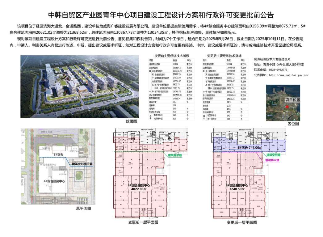 中韩自贸区产业园青年中心项目建设工程设计方案和行政许可变更批前公告